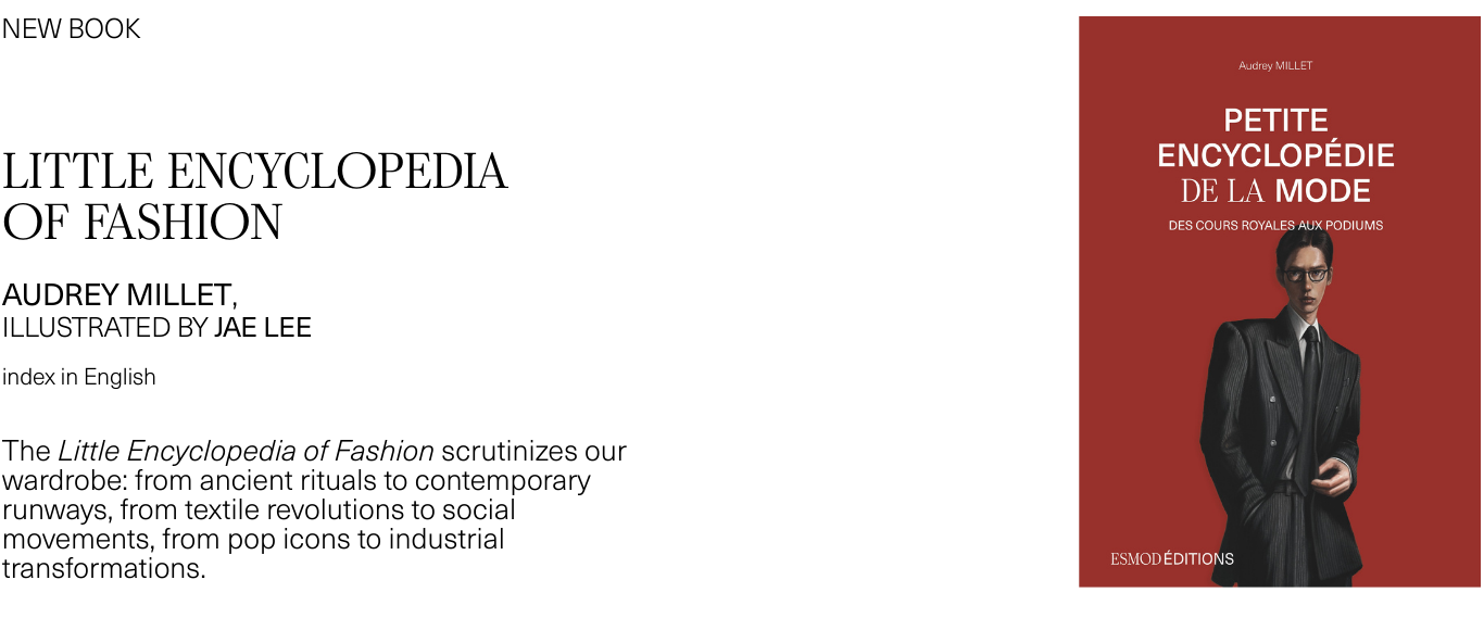 ![]() ESMOD Editions Rooted in the publishing tradition established by Alexis Lavigne—who released his first Tailor’s Method or Complete Cutting Manual in 1841 and served as editor-in-chief of Fashion-Theory starting in 1847—ESMOD Editions continues this legacy by publishing bilingual books aligned with the contemporary educational approaches of Fashion Business and Fashion Design. These publications cover a wide range of topics, from design and pattern-making to fashion history, textile guides, and marketing. |